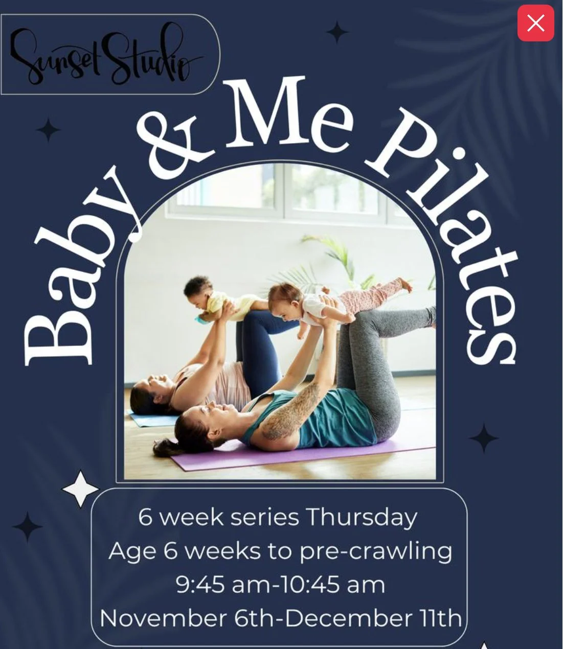 ~Recommended for people who are 6 weeks postpartum and have gotten doctor clearance. Babies who are 6 weeks old to pre-crawling.